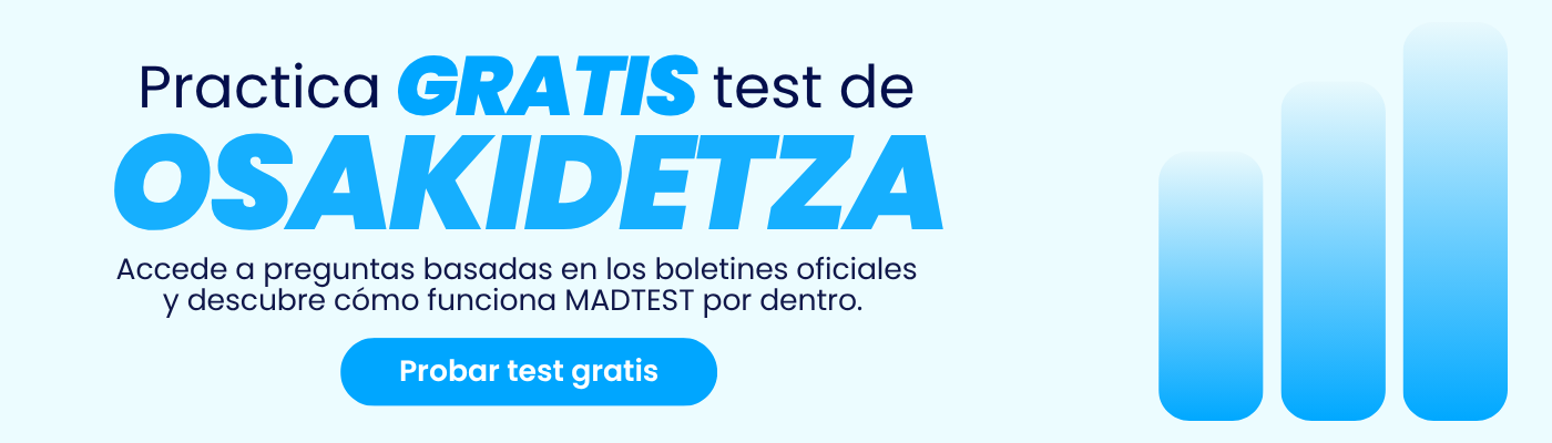 Entrena tu examen de Osakidetza 2026 con preguntas oficiales en MADTEST. Accede GRATIS y benefíciate de un descuento especial en tu preparación.